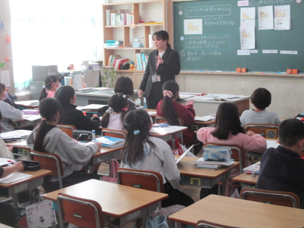 4年生の算数の授業では、「長方形・正方形ではない複雑な図形の面積の求め方」 をテーマに学習しました。子どもたちは、どのようにすれば長方形や正方形の公式を使って面積を求めることができるのかを考え、「分ける」「引く」「動かす」など、さまざまな方法を話し合いました。自分の考えをノートにまとめたり、友達の意見を聞いたりすることで、複数の考え方があることを理解することができました。たくさんのオリジナルのアイデアが出て、非常に学びの多い時間となりました。
