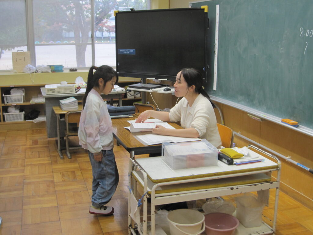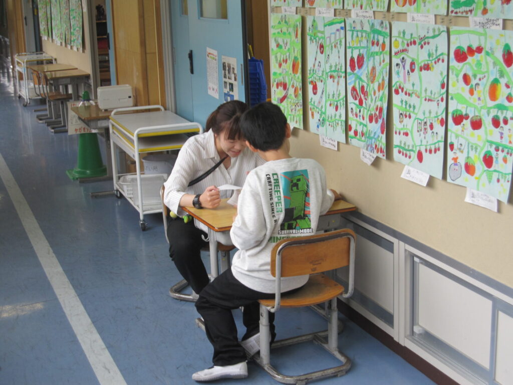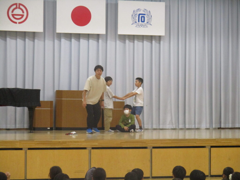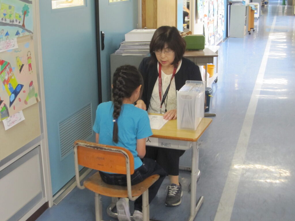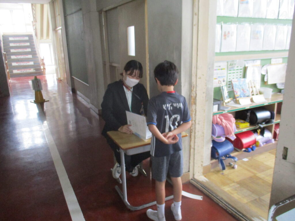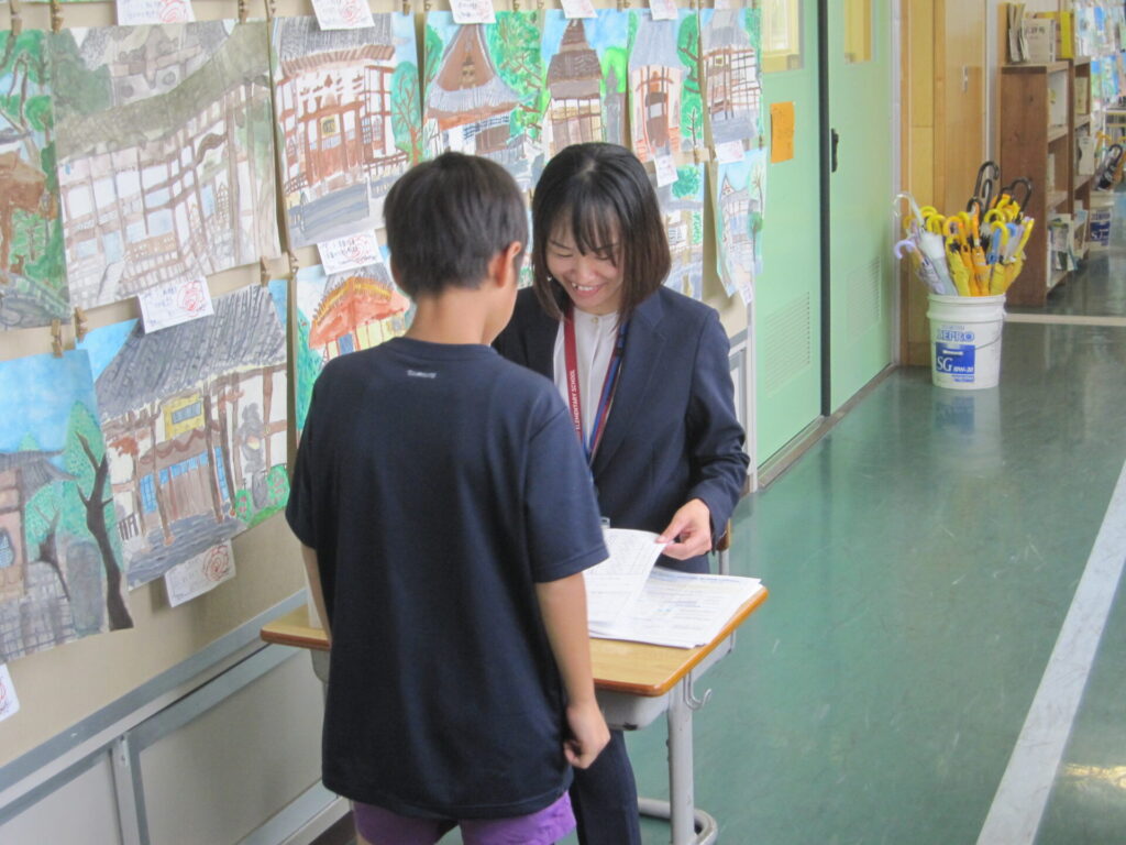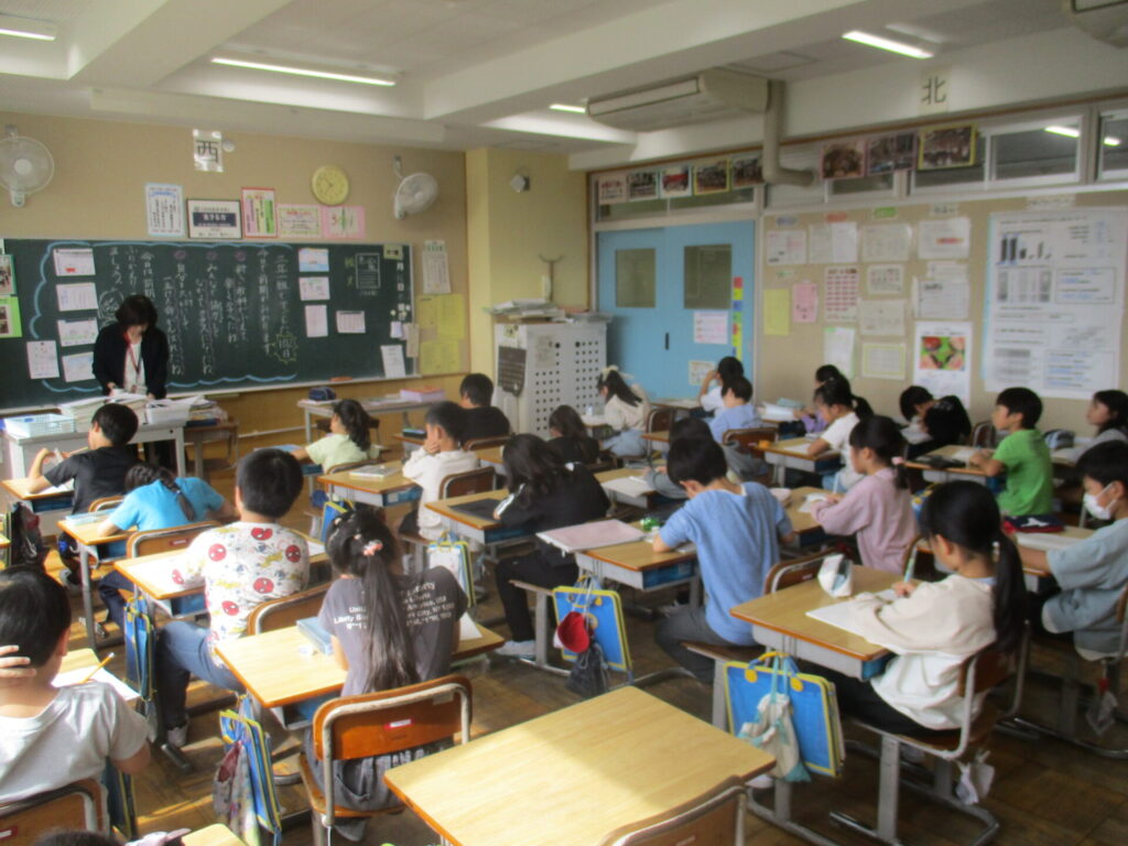 本日、前期終業式を行いました。校長先生から前期に各学年が頑張ったこと、成長したことのお話がありました。子どもたちは、真剣な表情で式に臨むことができました。各教室では担任の先生から通知票を受け取り、前期の振り返りを一緒にしていました。保護者,地域の皆様、前期の御協力に厚く御礼申し上げます。明日から、3日間の秋季休業日になります。健康に気を付けて安全にお過ごし下さい。