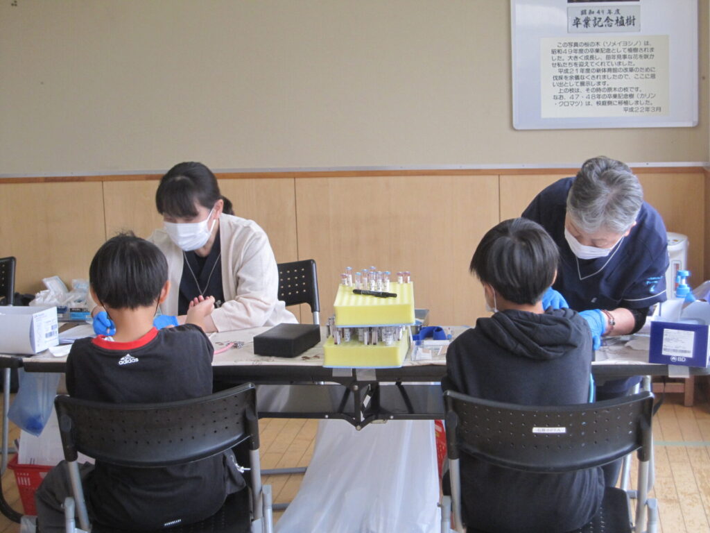 本日、4年生が埼玉県健康づくり事業団の方々が行う、小児生活習慣病予防検診及び貧血検査として採血と血圧測定を行いました。初めて採血をする児童もいましたが緊張の中でも落ち着いて検査をすることができました。生活習慣病患者は大人に多くみられますが、近年は若者から発症することも増えてきました。しっかり検査をして健康な日々を過ごしていきましょう。