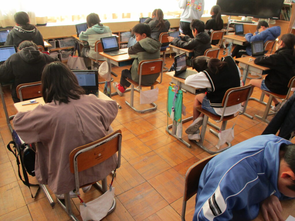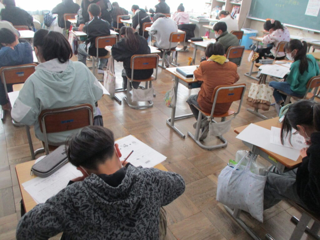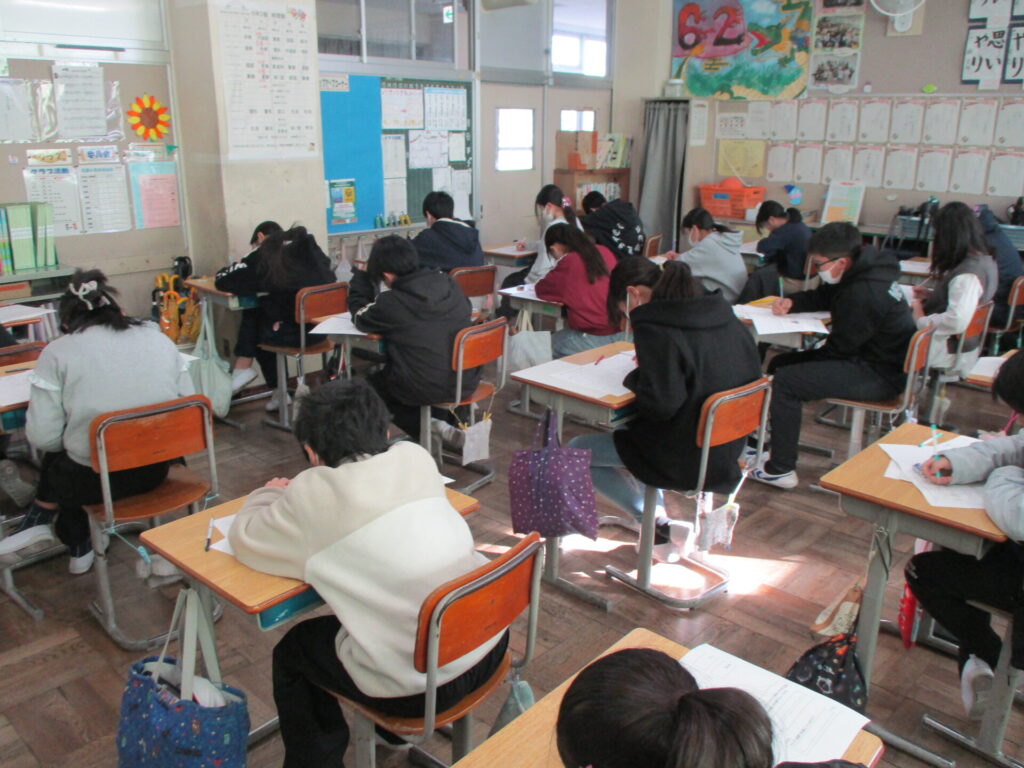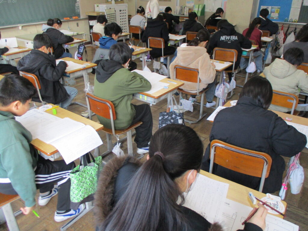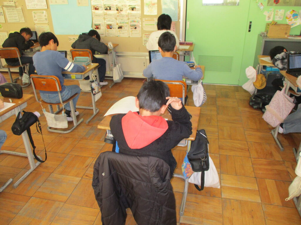 本日は、5年生が検証問題テスト、6年生が学習到達度調査を行いました。制限時間いっぱい、最後まで問題に向き合い、集中して取り組んでいました。5年生は、タブレットから問題を読み取り、解答用紙に答えていました。テストをやり終えた後は、安心感と充実感が教室にあふれていました。