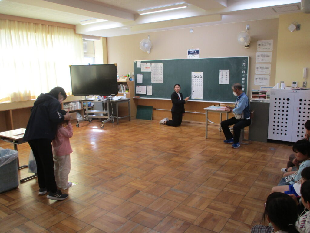 本日、来年度1年生になるお子さんたちの就学時健診を行いました。子どもたちは少し緊張しながらも、しっかりと話を聞いたり、元気にあいさつしたりしていました。来年の春、ランドセルを背負って登校してくる姿を今からとても楽しみにしています。保護者の皆様にはご協力をいただき、円滑に実施することができました。ありがとうございました。