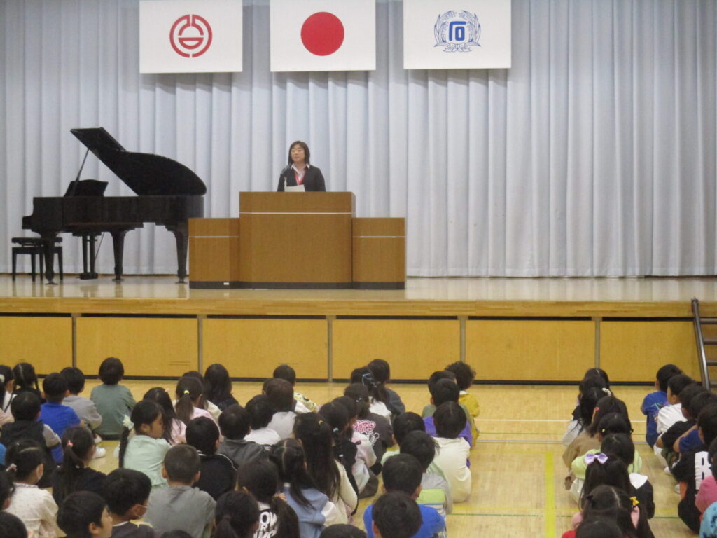 本日より、令和7年度の後期が始まりました。朝は体育館で後期始業式が行われ、元気な子どもたちの姿がそろいました。始業式では、校長先生からアメリカ初代大統領であるジョージ・ワシントンの伝記「柱に付いた釘の穴の傷」のお話がありました。毎日の生活の中でのちょっとした行いや言葉を大切に、後期も睦ましい学校にしていきましょう。