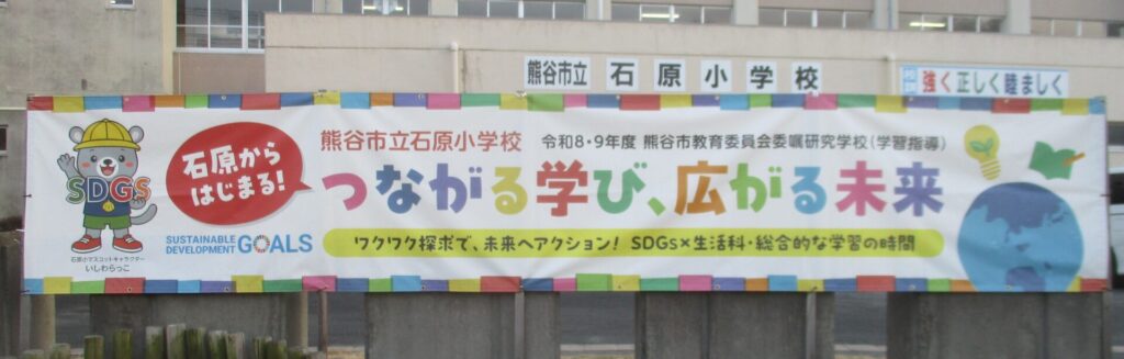 来年度から2年間、熊谷市教育委員会の委嘱を受け、「石原からはじまる! つながる学び、広がる未来 ―ワクワク探求で、未来へアクション!SDGs×生活科・総合的な学習の時間―」をテーマとして研究を行います。