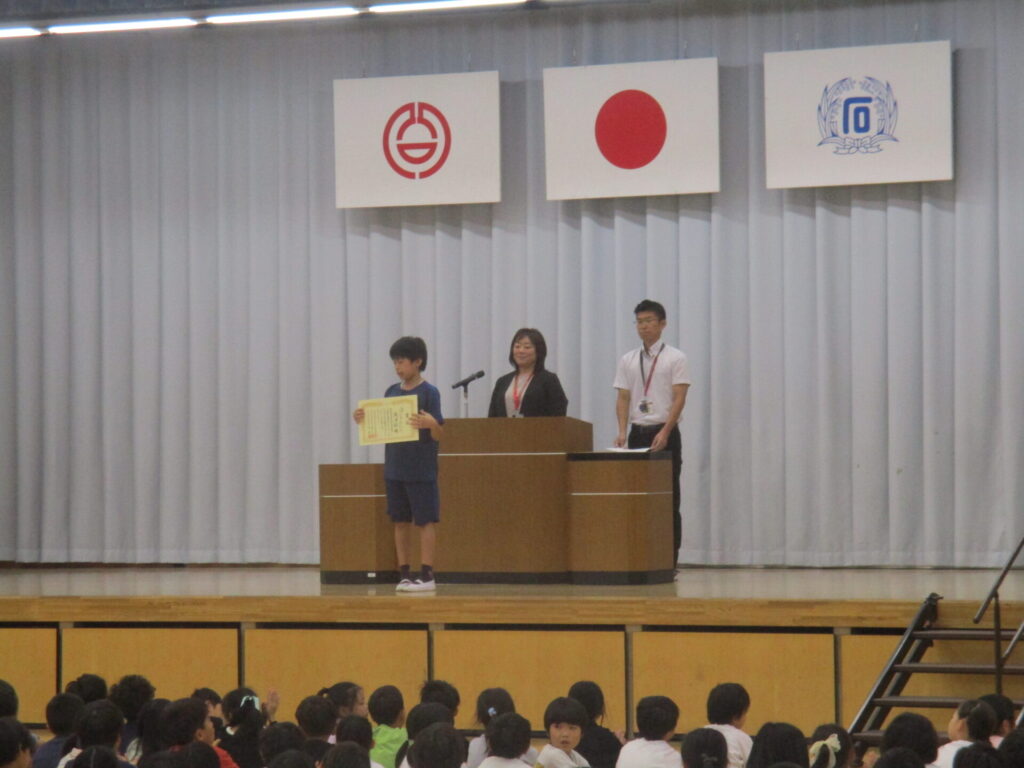 本日、全校で表彰朝会を行いました。今回は、スポーツ大会での活躍、標語の作品、読書感想文コンクールでの受賞など、さまざまな分野でがんばった児童が表彰されました。選ばれた児童は、名前を呼ばれると大きな声で返事をして、堂々とした姿で賞状を受け取っていました。友達の努力や成果に、大きな拍手が送られました。どの児童も、自分の力をしっかり発揮し、本当によくがんばりました。日々の努力の積み重ねが、すばらしい成果につながっています。これからも、それぞれのよさを伸ばしていくみなさんの姿が楽しみです。