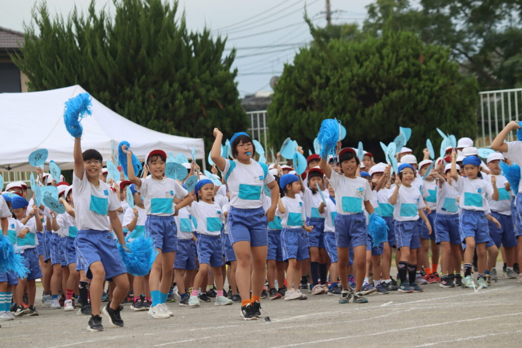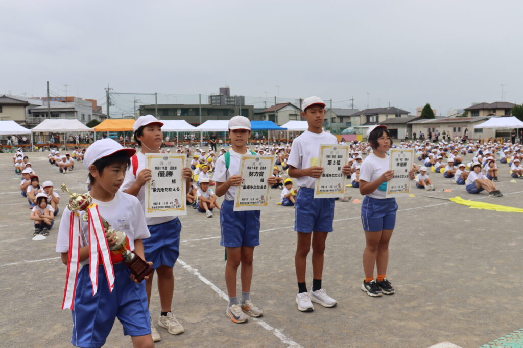 本日、令和7年度運動会を開催しました。児童たちは、赤・青・黄色・緑組に分かれ、これまで練習してきた成果を存分に発揮しながら、応援合戦や徒競走、団体競技に全力で取り組みました。一人ひとりが仲間と協力し、最後まであきらめずに頑張る姿がとても印象的でした。「自分の目標に挑み、あきらめずに取り組む姿(強く)」「ルールを守り仲間を尊重する姿(正しく)」「力をあわせて一つの演技や競技をつくりあげる姿(睦ましく)」が見られた実のある運動会でした。多くの保護者の方に温かい声援をいただき誠にありがとうございました。また、運営に御協力いただいたPTA、親友の会の皆様、本当にありがとうございました。