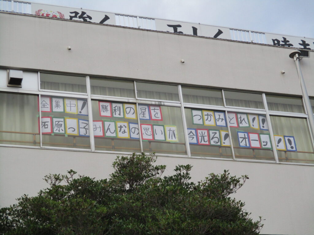 明日は令和7年度石原小学校の運動会です。今日まで応援練習や学年種目の練習をたくさん頑張ってきました。明日はその練習の成果を発揮し、仲間と共に輝く1日になります。本校の校訓「強く 正しく 睦ましく」をもとに自分の目標に挑みあきらめずに取り組むこと、ルールを守り仲間を尊重すること、力を合わせて一つの演技や競技をつくりあげることが子ども達の目指す姿として校長先生より以前お話をしていただきました。仲間と協力し合い、全力で取り組む子ども達の姿をぜひ見ていただきたいと思います。今回の運動会のスローガンは「全集中!勝利の星をつかみとれ!石原っ子 みんなの思いが今光る!オーッ!!」です。スローガンのように一人一人の思いが光るように頑張りましょう!