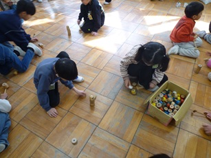 昔遊びでは、「お手玉」や「だるま落とし」、「おはじき」をしました。