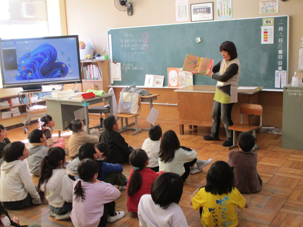 本日、2年生を対象にこづえの会の皆様が「本の読み聞かせ」を行って下さいました。動物のお話の絵本などさまざまな絵本を読んでいただきました。動物たちが活躍するお話では、子どもたちは登場する生き物の動きや気持ちを思い浮かべながら、楽しそうに耳を傾けていました。絵本の世界に入り込んで聞く姿から、本への関心の高まりが感じられました。本を通して、子どもたちの心が豊かに育つ、温かい時間となりました。