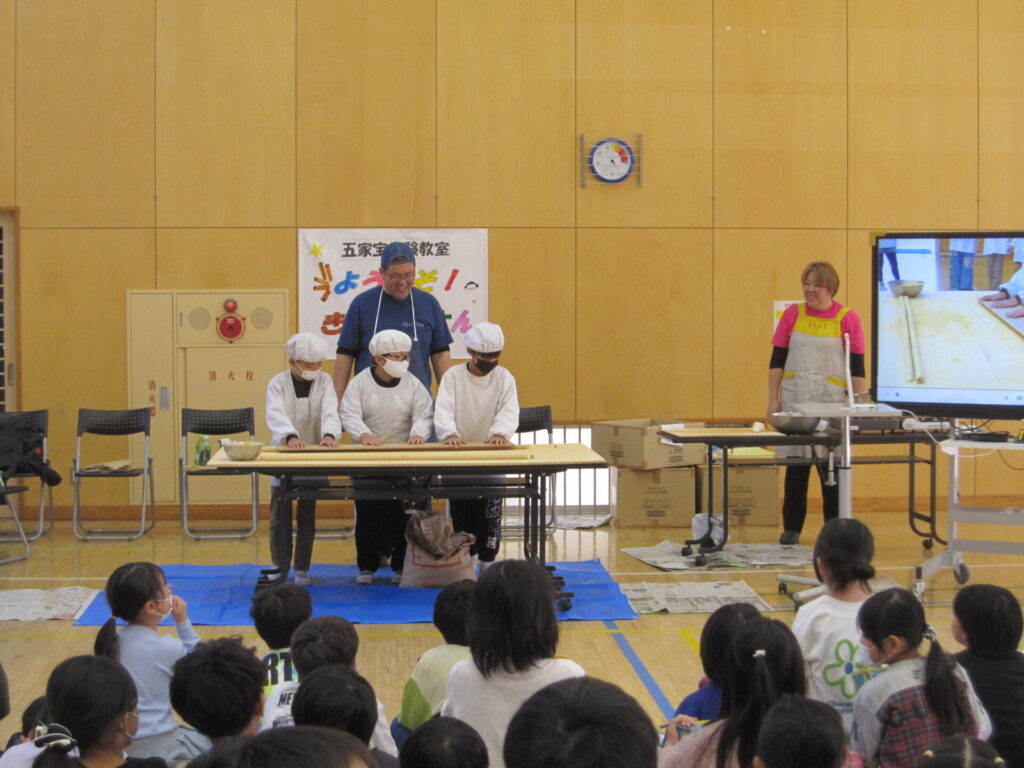 今日は、3年生が五家宝体験を行いました。熊谷市玉井にある「きなこ屋」さんに来ていただき、五家宝作りを実演をしていただきました。代表児童が一緒に作ったり、質問をしたりして、みんなで五家宝についての理解を深めました。作っていただいでいるときから、美味しそうな五家宝を見て、目を輝かせていた子ども達。最後に全員で試食をすると、「今までで一番おいしい!」「もっと食べたい!」とみんなの笑顔が輝きました。