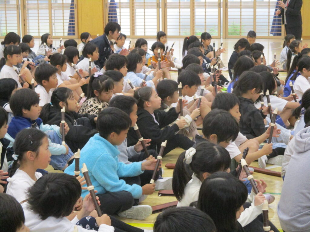 本日、3年生がリコーダー講習会を行いました。講師として東京リコーダー協会の本多先生にお越しいただき、リコーダーの種類やリコーダーで綺麗な音を出すための工夫を実演を交えまがら、楽しく教えていただきました。また、本多先生が様々な大きさのリコーダーで演奏してくださり、「リコーダーの大きさによって、音の高さが変わる」ことも分かりました。子ども達はリコーダーからシャボン玉が出るように意識しながら息を入れ、きれいな音を出そうと集中して取り組んでいました。これから授業でもリコーダーの学習が始まります。たくさん練習をして、いろいろな音楽が演奏できるようになりましょう!