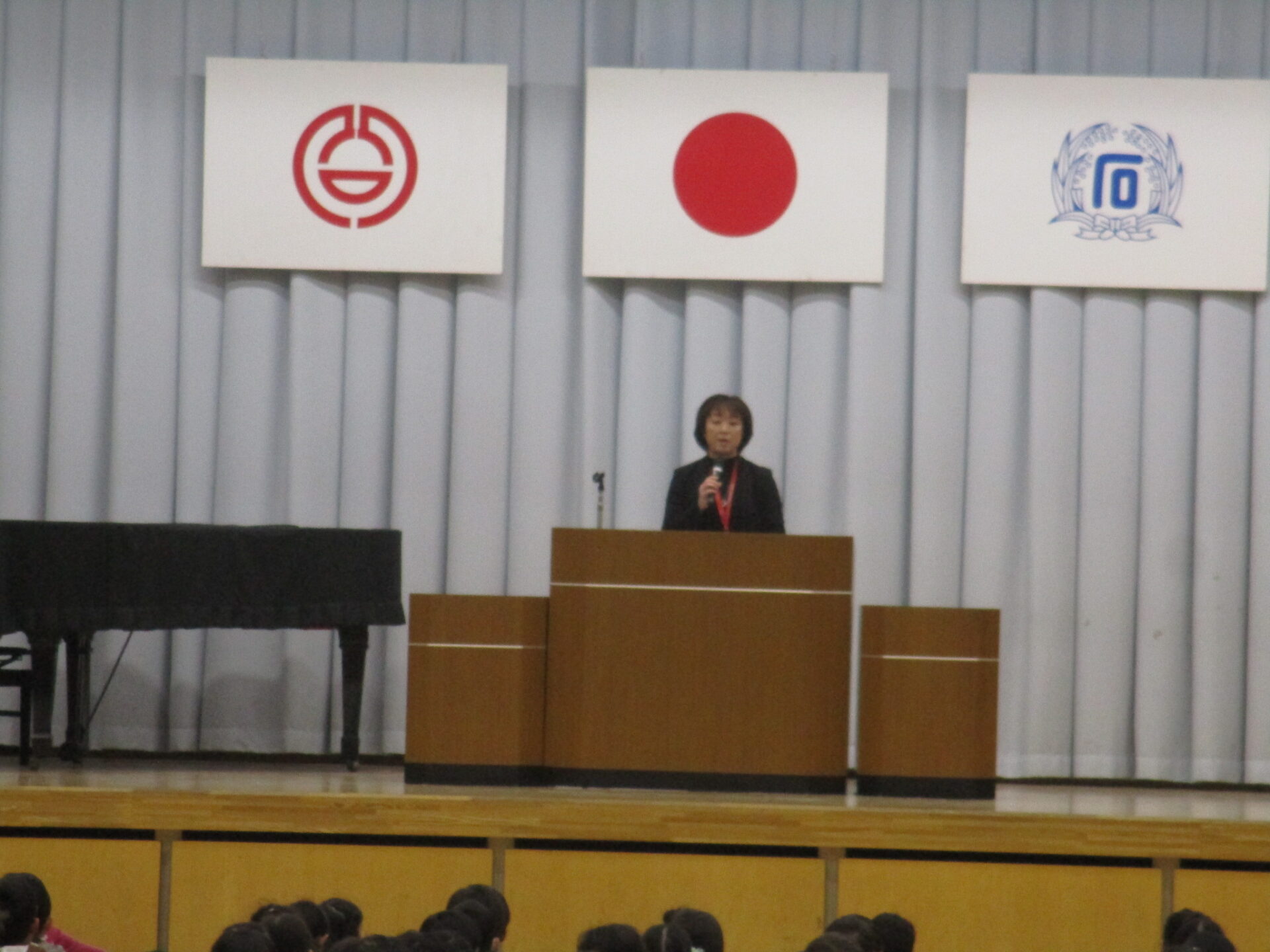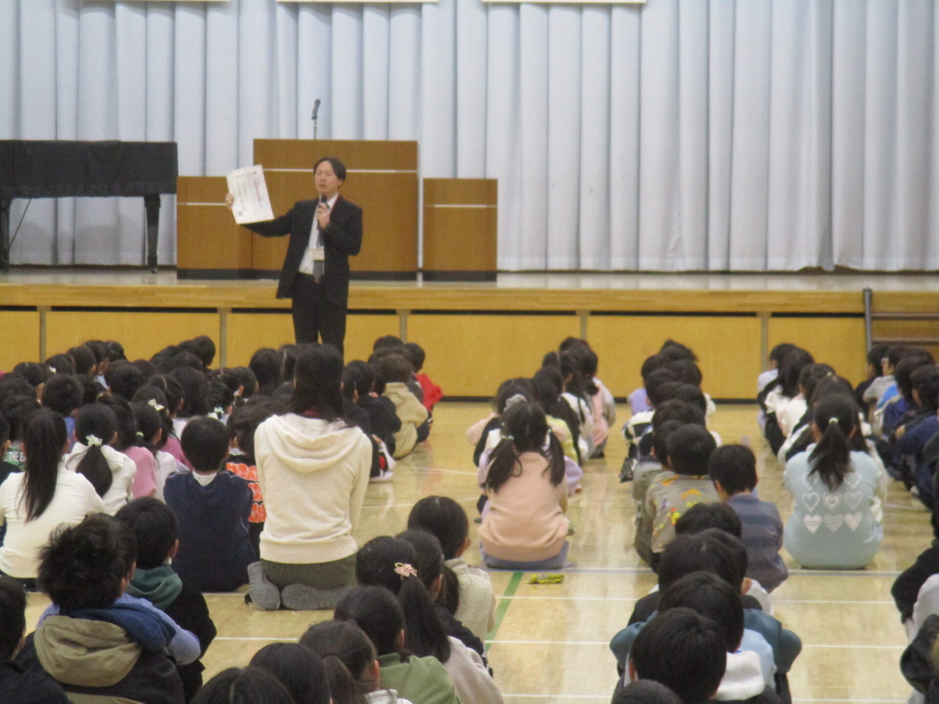 本日、全校朝会を行いました。はじめに、校長先生から 2011年3月11日に発生した東日本大震災 についてのお話があり、日ごろから「自分の身は自分で守る」ことの大切さを学びました。災害はいつ起きるかわかりません。災害に巻き込まれ、倒れたり大けがをしたりした時、自分が誰なのかが相手にわかるように、しっかりと名札をつけることについてもお話がありました。そのために、毎日名札、ハンカチ、ティッシュをしっかりと持ち歩きましょう。