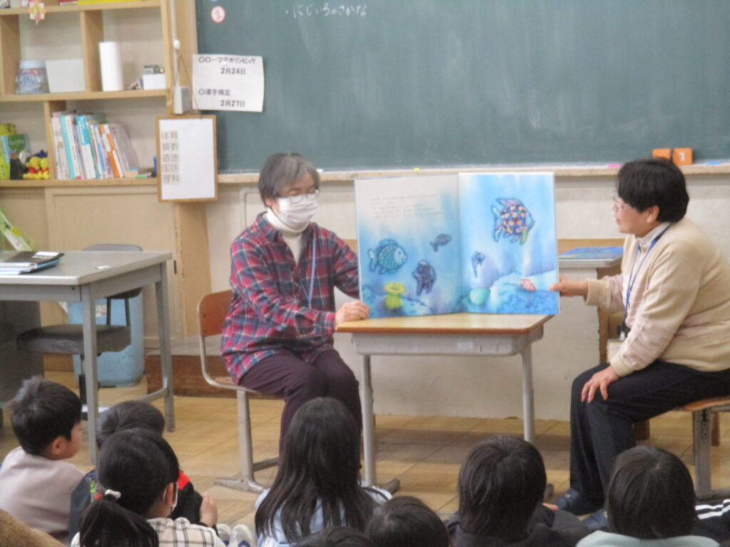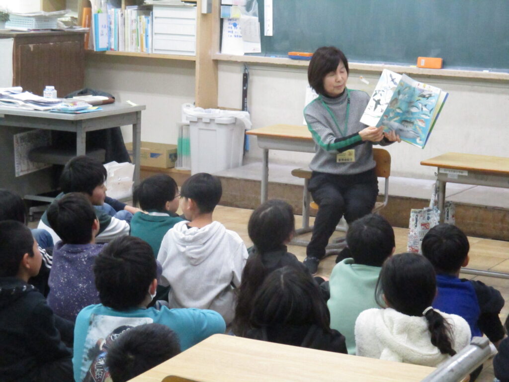 本日、4年生を対象に、こづえの会の皆様が「本の読み聞かせ」を行ってくださいました。今回は「海の生き物」や「陸上の生き物」をテーマにした本を紹介していただき、子どもたちは物語に登場するさまざまな動物たちに興味津々でした。ページをめくるたびに、「へえ」「なるほど」と、驚きや発見の声があがり、子どもたちの目がきらきらと輝いていました。読み聞かせを通して、動物の生態やふだん知ることのできない世界に触れる、貴重な時間となりました。こづえの会の皆様、すてきな読み聞かせの時間をありがとうございました。