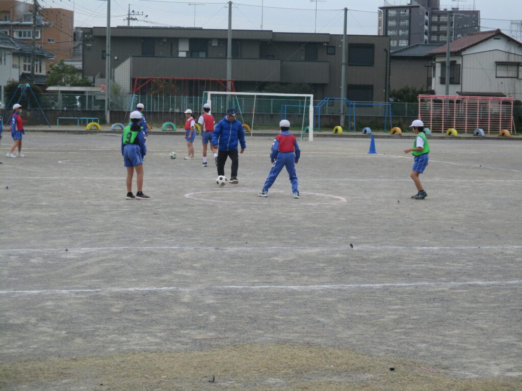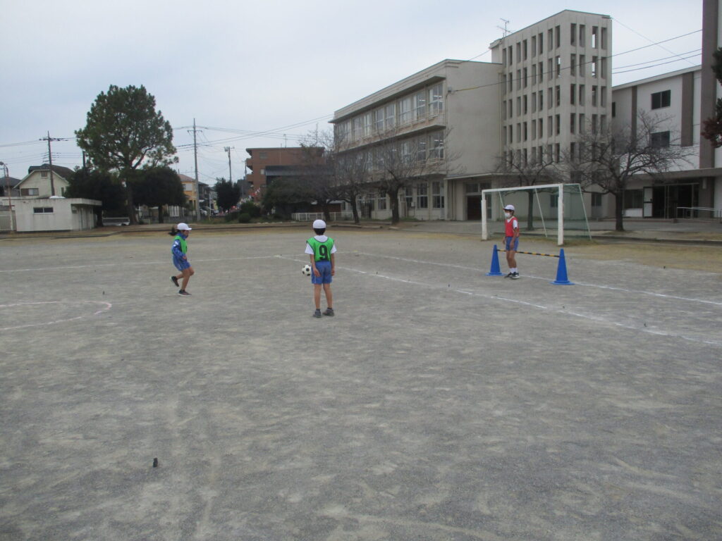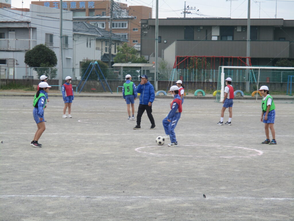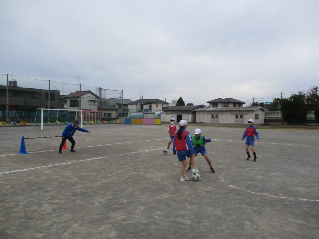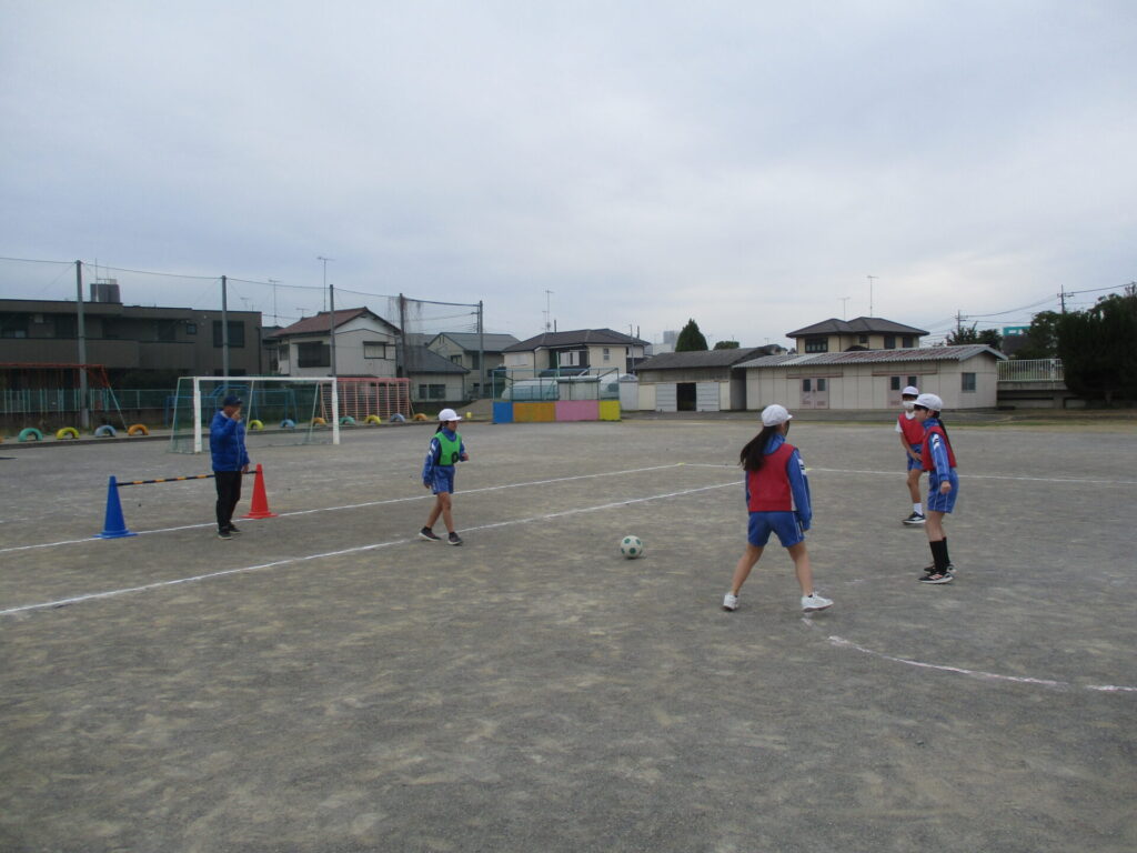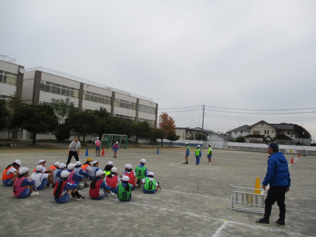 本日、熊谷市教育委員会体育指導専門員の外村先生をお招きして、6年生が体育「サッカー」の指導を受けました。外村先生からは、上手にパスをするコツや、ドリブルで相手を抜くコツなど学びました。少し肌寒い中でしたが、子供たちは真剣な顔つきで体を動かしていました。外村先生、ありがとうございました。