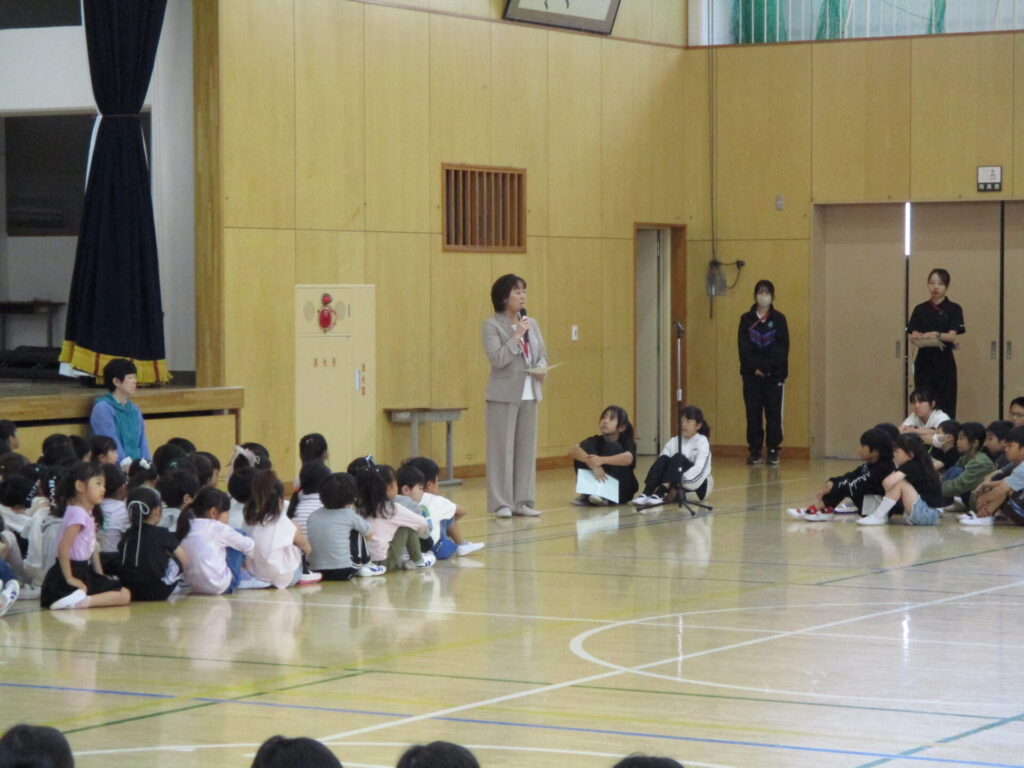 2年生から6年生が石原小学校の紹介を行い、石原小のいいところについて分かりやすく伝えました。1年生は元気いっぱいにクラス紹介をし、これから始まる学校生活への期待が感じられる発表となりました。