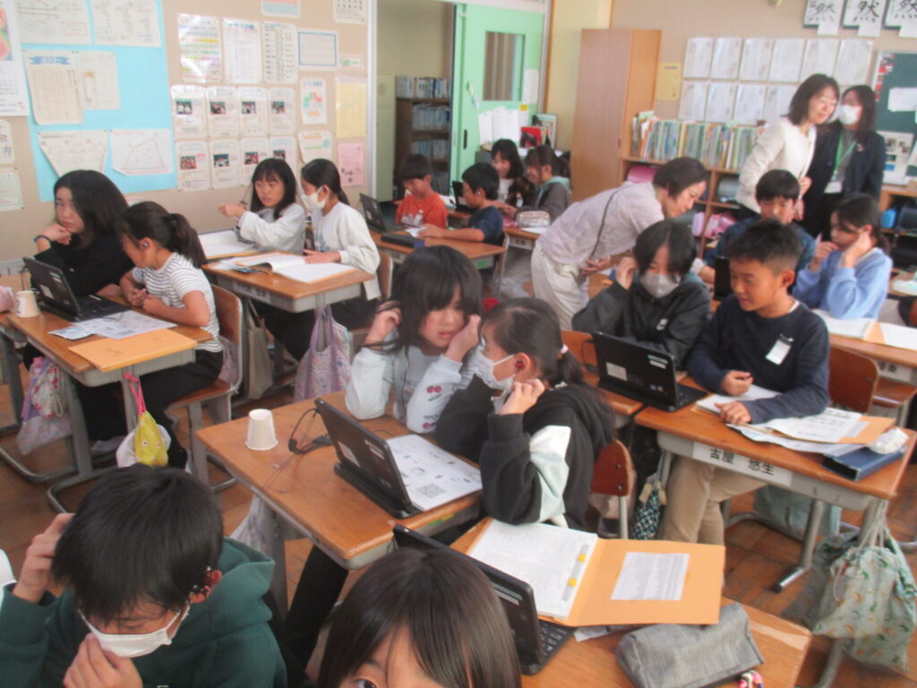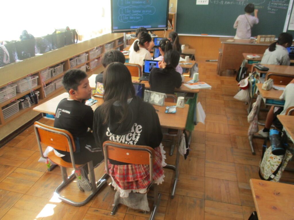 5年生が英語の学習で、OBL(オンライン・ブレンディッド・ラーニング)に取り組みました。前回よりもしゃべれる単語やフレーズが増えている様子が見れました。「これ、どうやって言うんだろう?」とペア同士でどうにか伝えようと試行錯誤している様子がうかがえて素晴らしかったです。「前回よりもたくさん話せたよ!」「もっとやりたかった!」などOBLが楽しかった声がたくさん聞こえてきました。今後も世界の人とのコミュニケーションを通じて英語を楽しく学んでいきましょう。